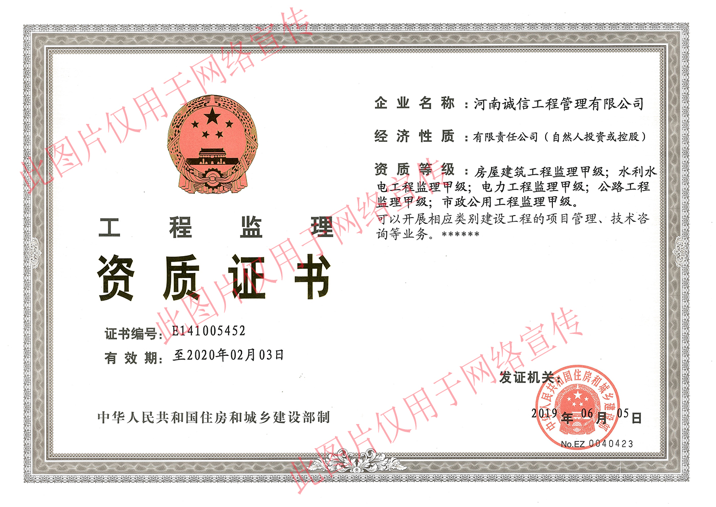 近日,河南誠信喜獲中華人民共和國住房和城鄉(xiāng)建設(shè)部頒發(fā)的“電力工程監(jiān)理甲級資質(zhì)證書”,成功晉升為電力工程監(jiān)理甲級資質(zhì)。該項資質(zhì),為河南誠信今后更好的拓展市場、爭取電力工程項目奠定了基礎(chǔ)。